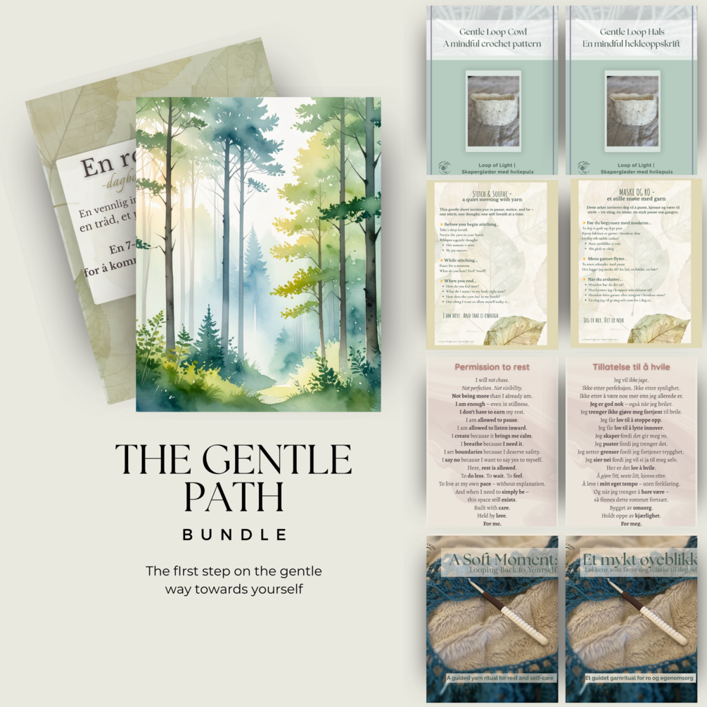 A gentle 7-day journal for thread & thought A 5-minute mindful yarn meditation video Printable Permission to Rest reminders Stitch & Soothe reflection prompts The Gentle Loop Cowl crochet pattern Turn your yarn time into soulful me-time — calm, simple, and guilt-free.